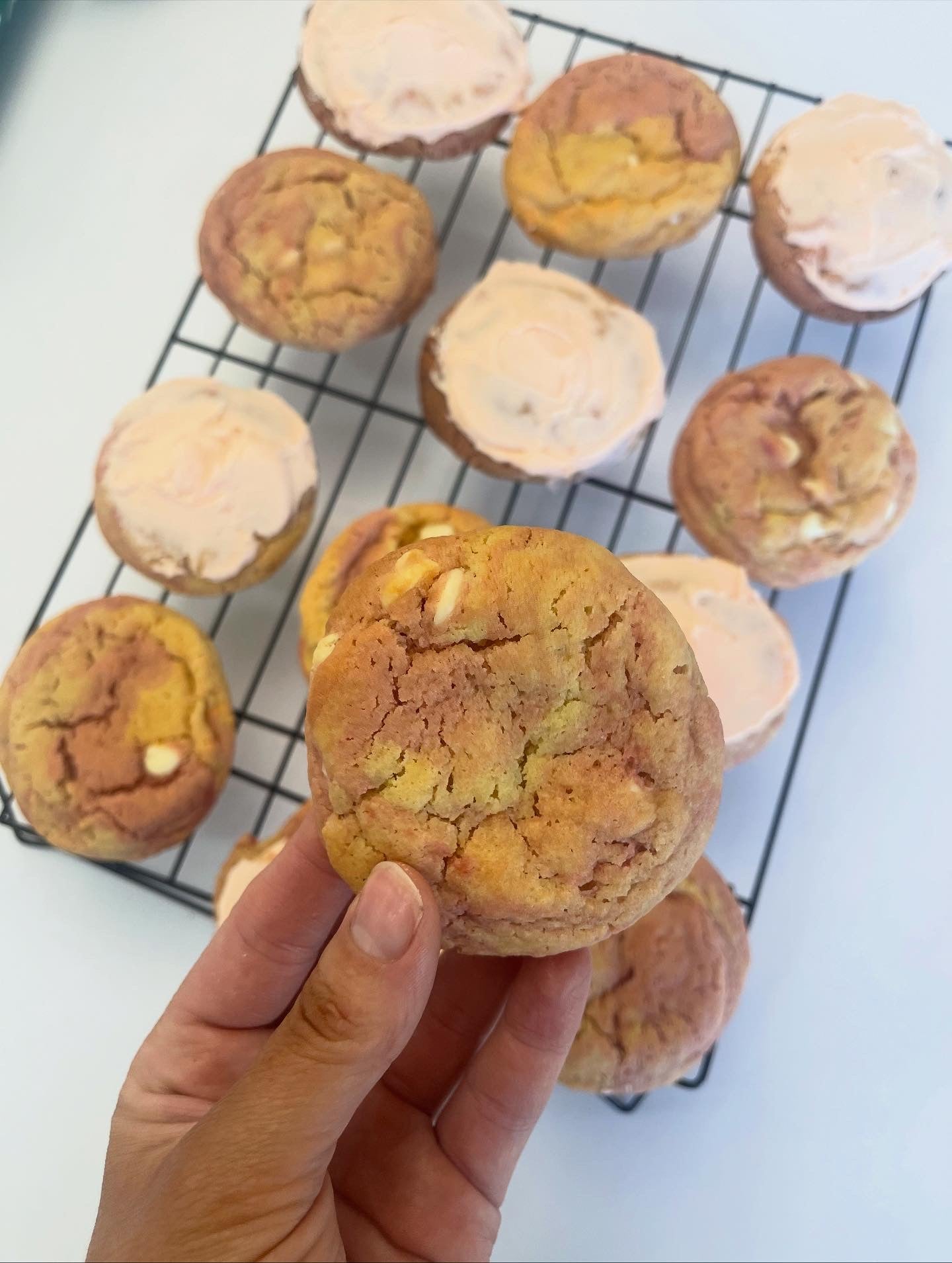 Raspberry & White Chocolate Stuffed Cookies: These cookies are infused with tart raspberry bits and creamy white chocolate chunks. Enjoy the goodness in every bite!