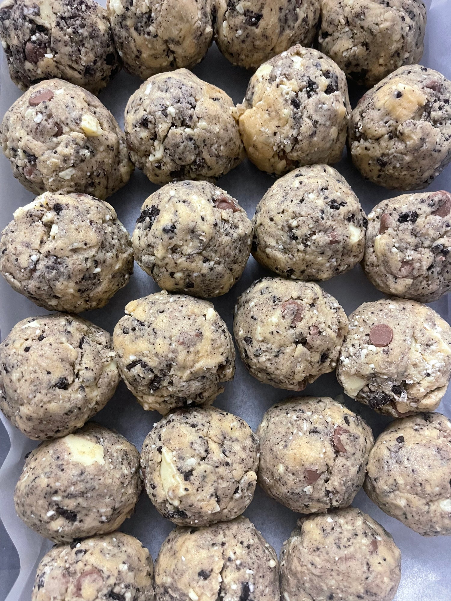 Cookies & Cream Stuffed Cookies: Rich, buttery cookies filled with creamy white chocolate chunks and classic chocolate cookie pieces.